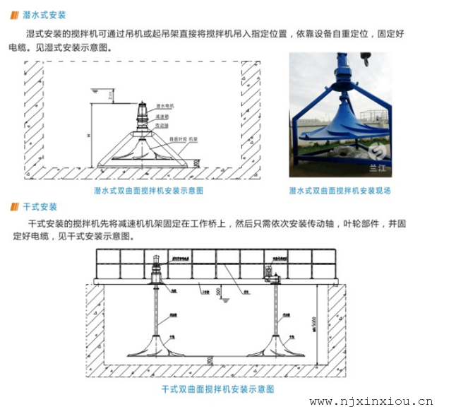 对于无预制钢混平台的工作场合,可制作走道工作桥或钢支架操作平台,吊装安放在池内即可。A2/O池的搅拌:用于污水及A2/O工艺中厌氧除磷及缺氧脱氮部分的搅拌。